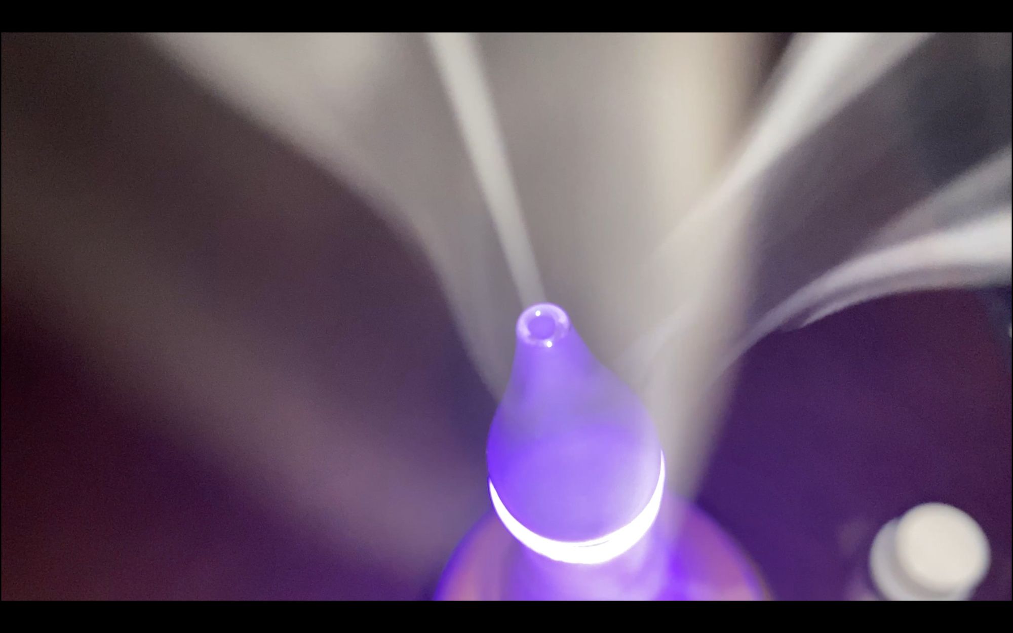 The many glowing colors, flowing mist, and pump in the middle working in the nebulizer.